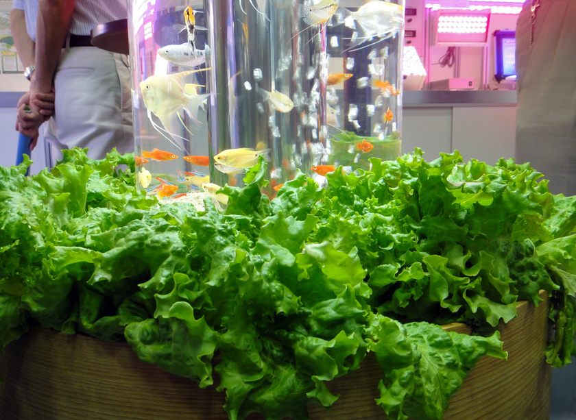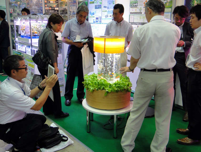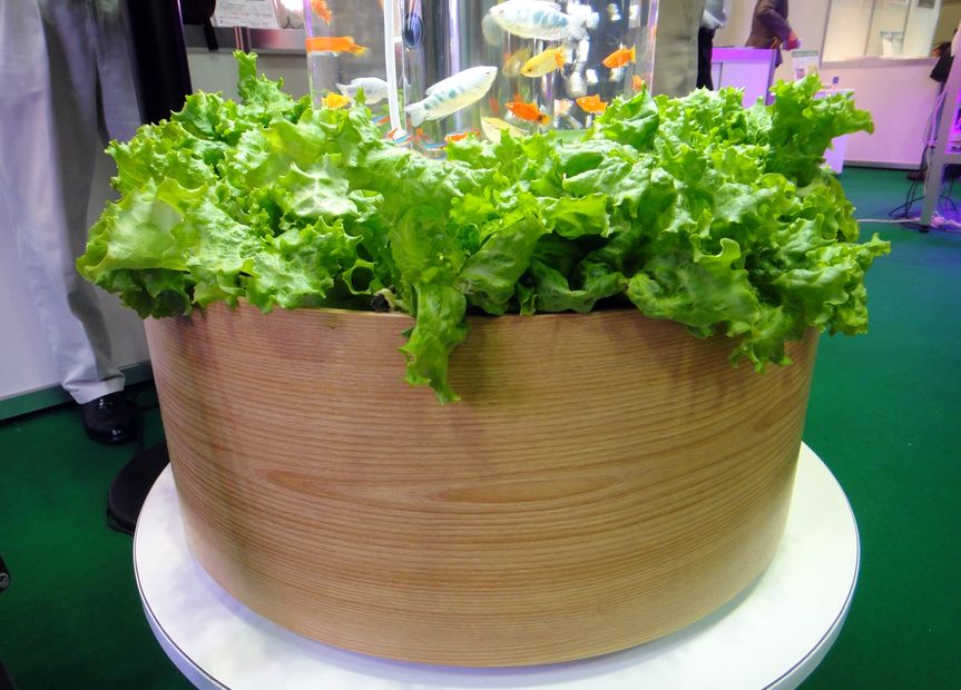 Эта уникальная аквапонная система (Aquaponics) была разработана как замкнутая установка, в которой рыбные отходы использовались для выращивания овощей. Аквапонная система демонстрировалась на выставке в Японии. Принцип ее работы — это симбиоз растений и рыб, в котором биологическое расщепление отходов жизнедеятельности рыб обеспечивает питание растений.
